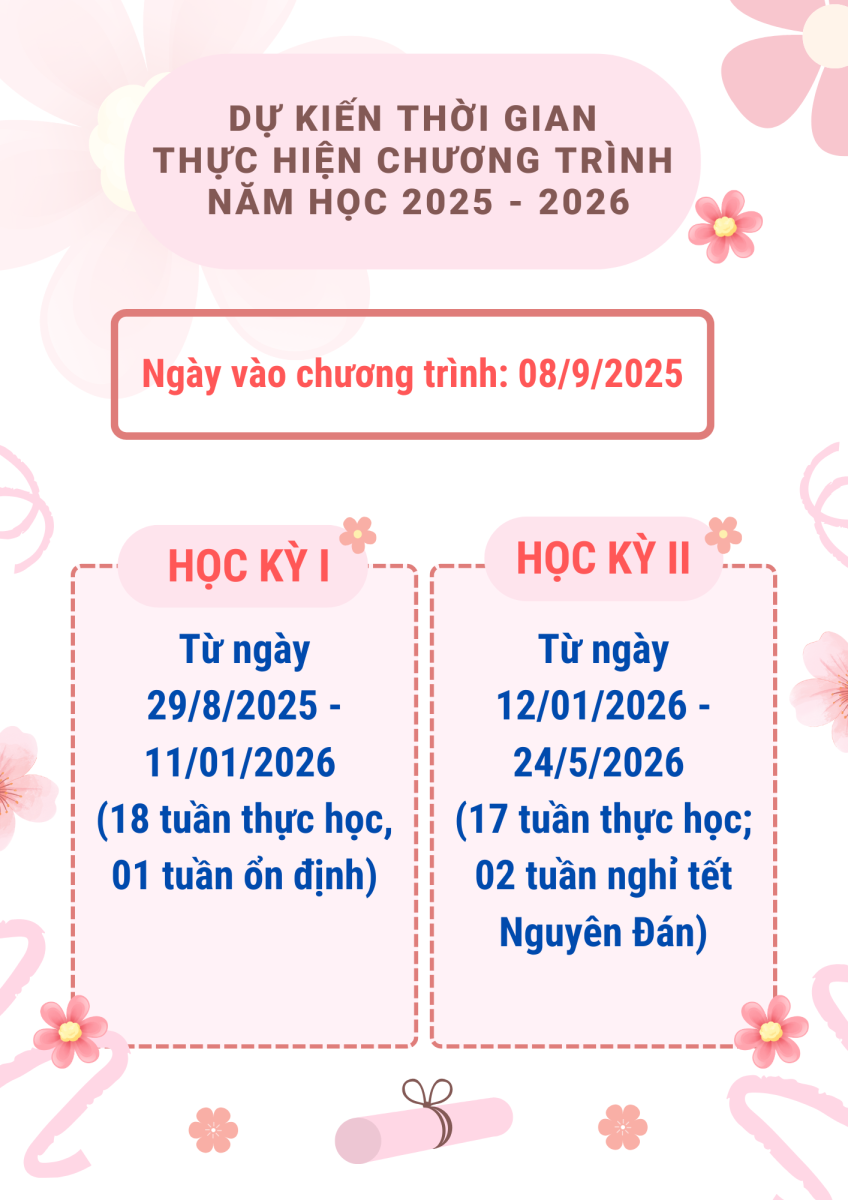 THỜI GIAN THỰC HIỆN CHƯƠNG TRÌNH NĂM HỌC 2025 - 2026